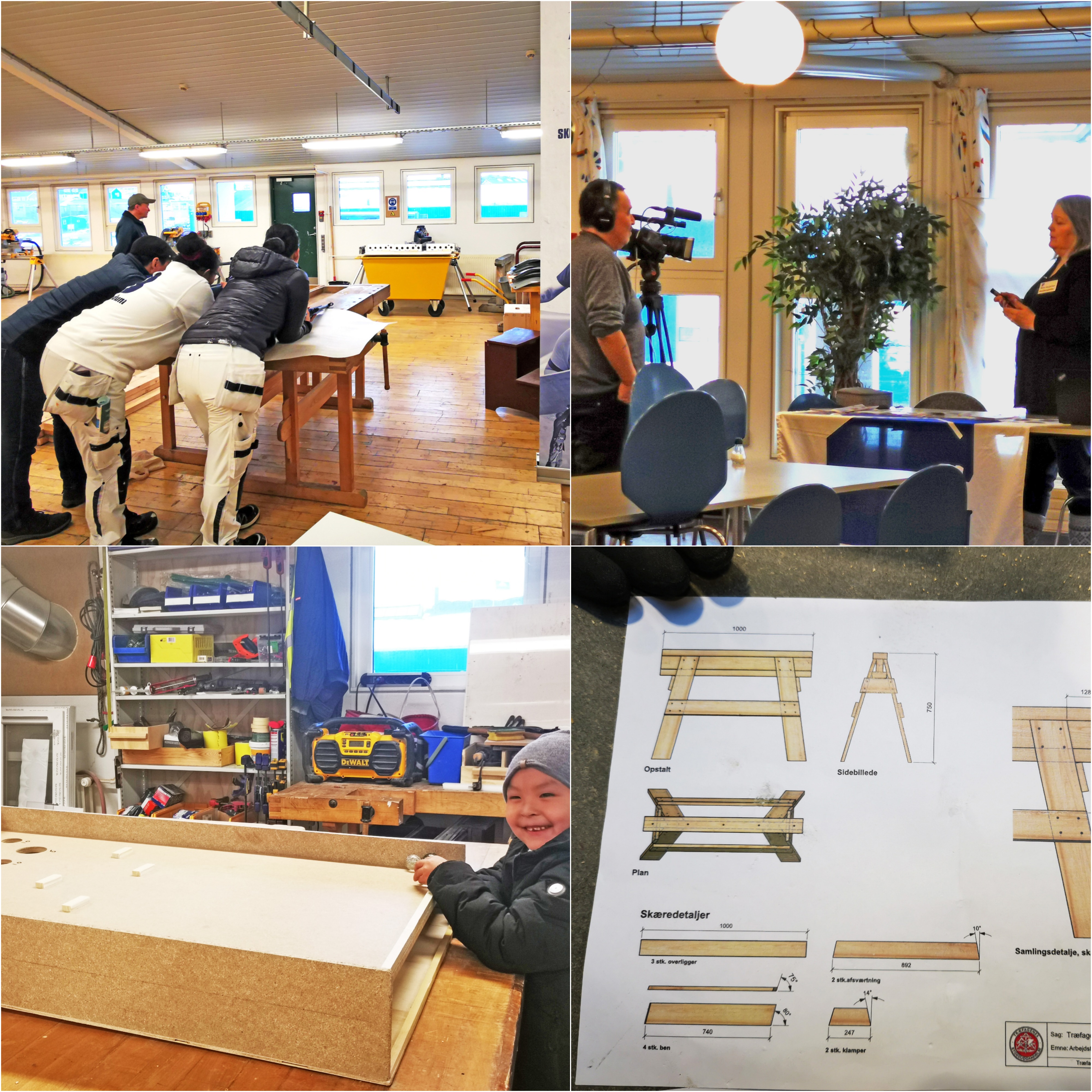 KTI’s nye undervisningshal var fyldt med tømrerelever der lavede traditionelle grundlæggende konstruktioner i træ. KTI's nye elever på den 2 årige uddannelse, KTI Arktisk Bygningsarbejder, Forskalling, lavede opmåling til en ny byggegrund samtidig med, at de arbejdede på at fremstille en træbuk.